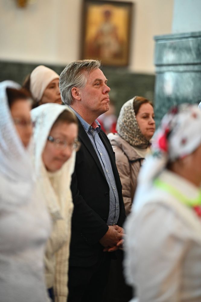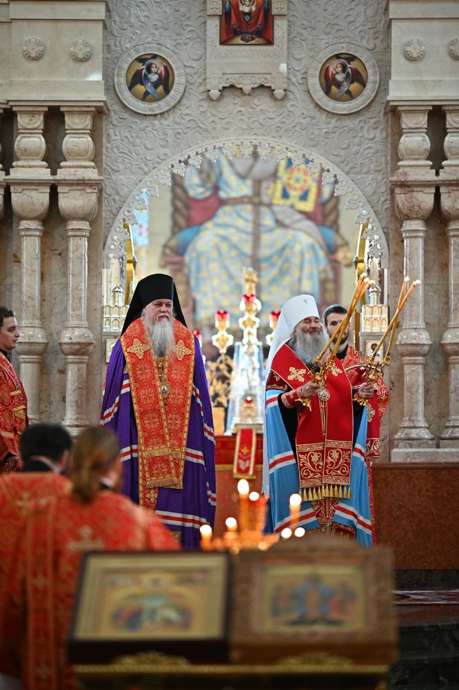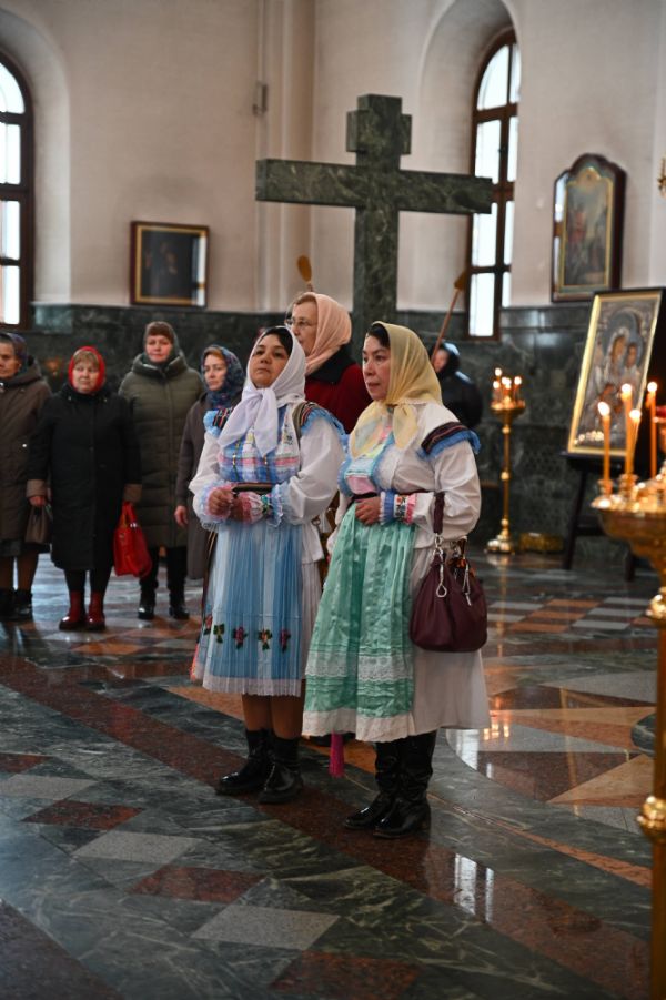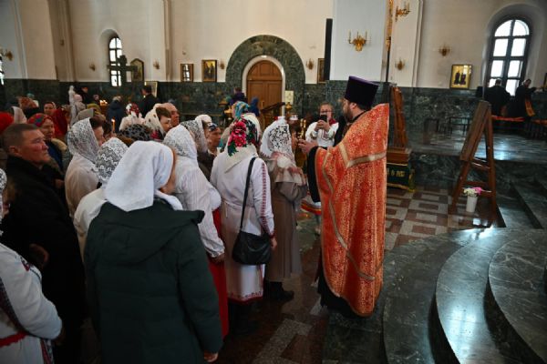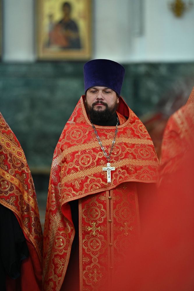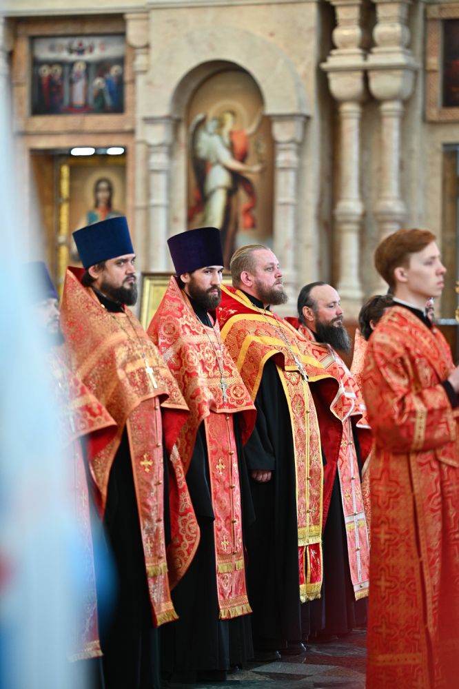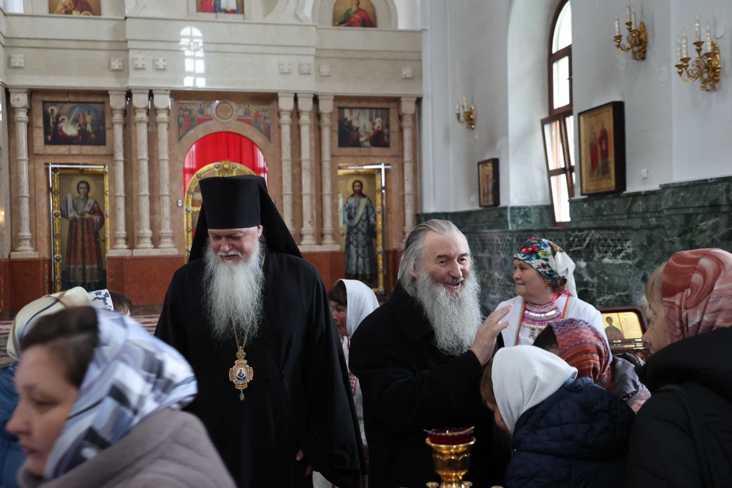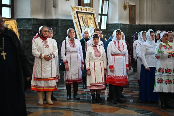 Архипастырям сослужили секретарь Йошкар-Олинского епархиального управления иерей Димитрий Дьяков и клирики Марийской митрополии, владеющие марийским языком. Песнопения на марийском языке исполнял архиерейский хор «Благовест» под управлением Татьяны Черновой.