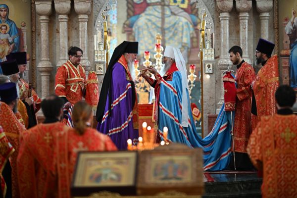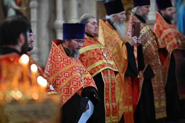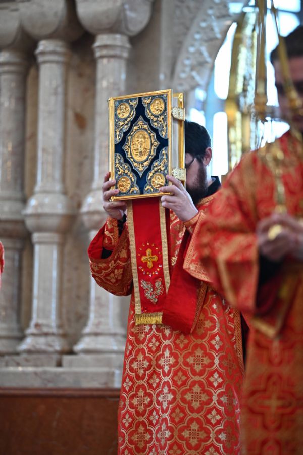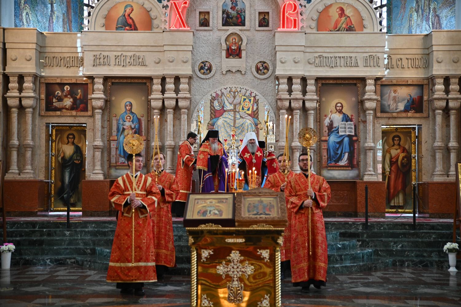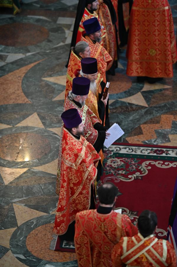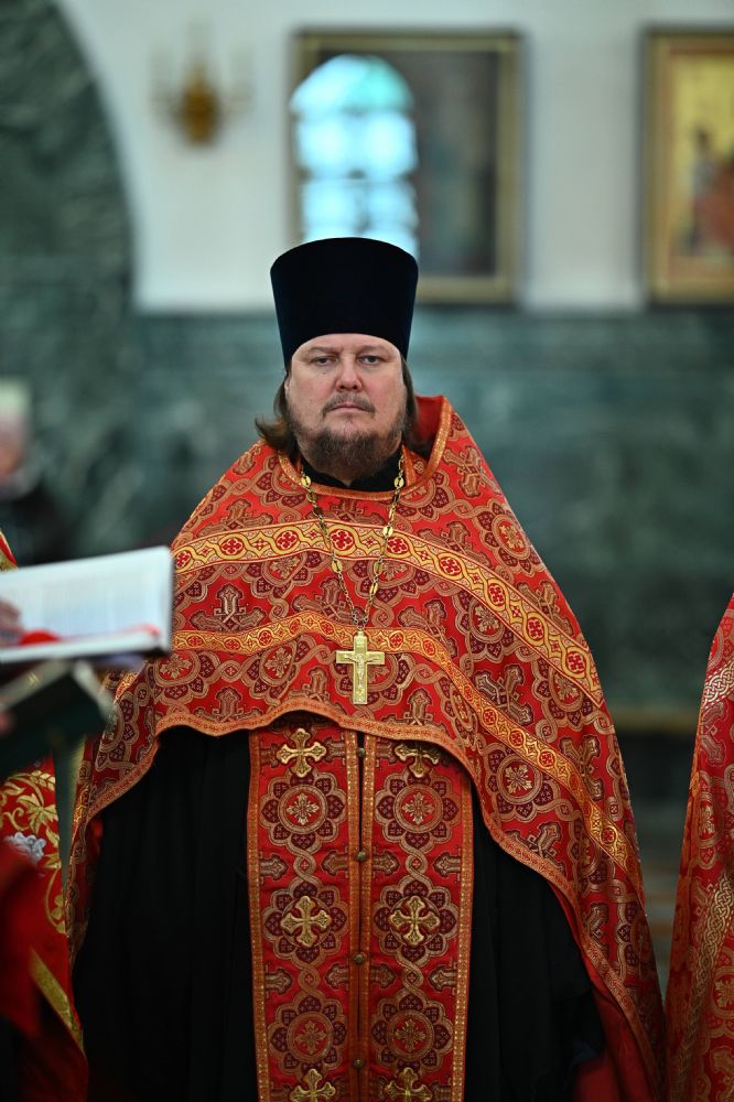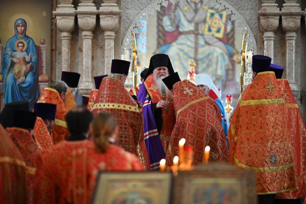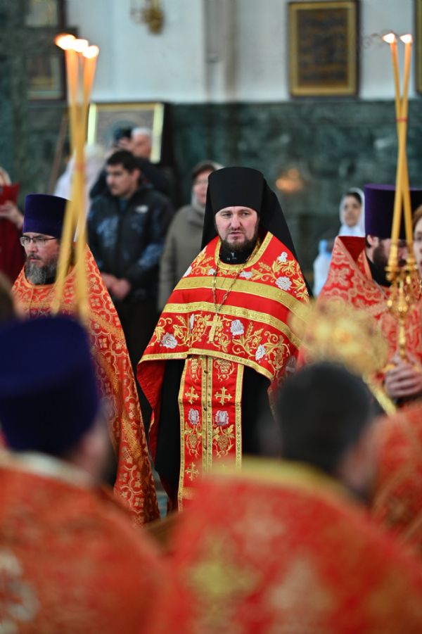 Архипастырям сослужили секретарь Йошкар-Олинского епархиального управления иерей Димитрий Дьяков и клирики Марийской митрополии, владеющие марийским языком. Песнопения на марийском языке исполнял архиерейский хор «Благовест» под управлением Татьяны Черновой.