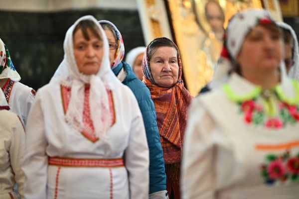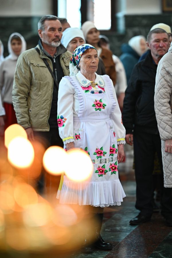 Вознести молитвы Господу на родном языке собралось немало верующих – как из Йошкар-Олы, так и из сельских приходов республики. Евангельское чтение звучало на двух языках – церковнославянском и марийском.