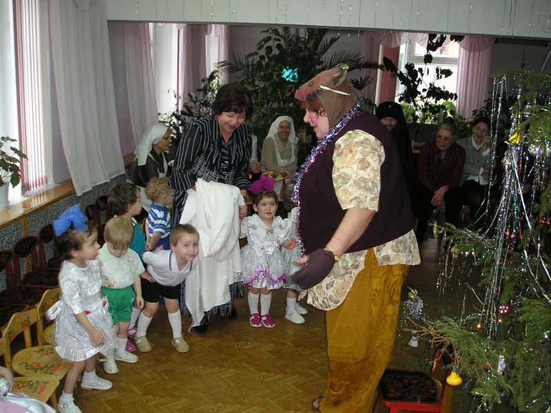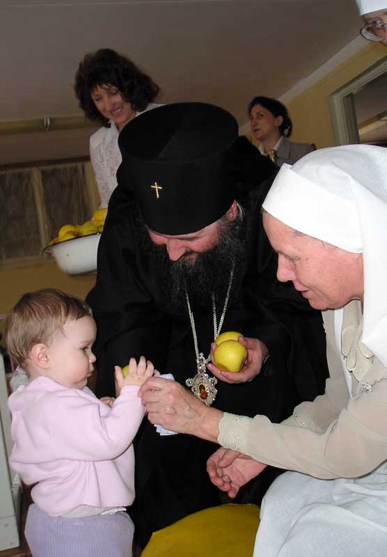 Среди столичных «горячих адресов» значился и специализированный Дом ребенка для детей с поражением центральной нервной системы и нарушением психики. Здесь лечатся больные дети в возрасте до 4 лет. Многие из них — сироты, которых оставили родители. Неслучайно этому специализированному учреждению попечительствует епархия. Священники и сестры милосердия постоянно оказывают здесь патронажную помощь. А в минувшие святочные дни Дом ребенка навестил владыка Иоанн.