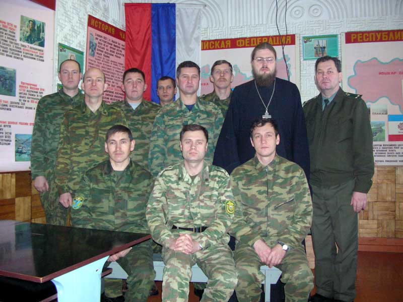Представители Йошкар-Олинского епархиального управления приглашаются и на сборы, проводимые с руководителями групп общественно-государственной подготовки и заместителями командиров подразделений по воспитательной работе. В конце декабря прошлого года на территории части состоялась встреча участников сборов с руководителем отдела Йошкар-Олинского епархиального управления по взаимодействию с Вооруженными Силами и правоохранительными органами священником Александром Бачуриным. Речь шла о проведении занятий по основам Православия для личного состава части, оборудовании молитвенных уголков в казармах. Также был составлен план дальнейшего сотрудничества в 2005 году. В заключение участники сборов ознакомились с опытом взаимодействия служителей Русской Православной Церкви с частями Екатеринбургского гарнизона и посмотрели фильм о флотоводце Федоре Ушакове, прославленном Церковью в лике святых. Такие мероприятия повышают духовную культуру офицеров и прапорщиков, способствуют росту уважения к подчиненным, ответственности за них.