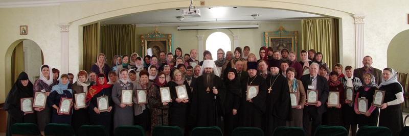 Собрание завершилось награждением победителей конкурса, которое провел Его Высокопреосвященство. Девять преподавателей удостоены почетного звания «Серафимовский учитель», 21 учитель стал лауреатом Педагогической премии преподобного Серафима Саровского, 36 человек получили поощрительную премию, 38 педагогов поощрены Дипломами.