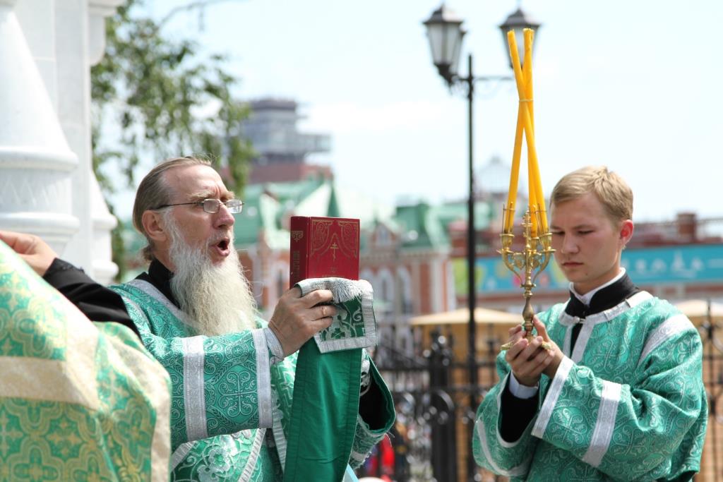 Церемония продолжилась чином освящения часовни во имя «Всех святых, в земле Российской просиявших». Возглавил ее архиепископ Йошкар-Олинский и Марийский Иоанн в сослужении настоятеля Воскресенского собора г. Йошкар-Ола протоиерея Сергия Поглазова и клирика Вознесенского собора иерей Андрея Норкина. По освящении Владыка обратился к присутствующим с пастырским словом: «Пусть в этой часовне всегда будут гореть свечи в память русских воинов, почивших за веру и Отечество наше…»