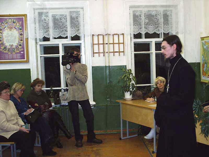 Перед участниками собрания выступили директор школы В. Гришина, психолог психдиспансера Е.Кузнецова, методист ГУНО М. Хропатая, кандидат педагогических наук, доцент кафедры медико-биологических наук МГПИ им. Крупской И.Сунгурова, руководитель молодежного отдела Йошкар-олинской епархии иерей Андрей Норкин и священник Вознесенского собора города иерей Алексий Михайлов.