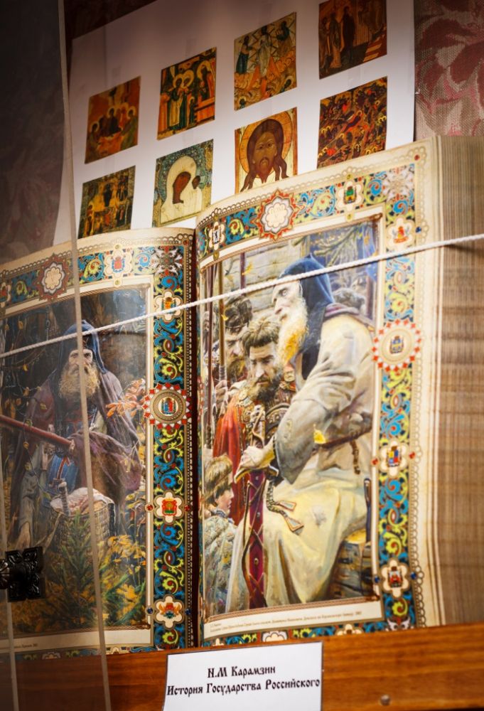 Экспозицию выставки составили книги, напечатанные в XVII-XXI веках. Особого внимания заслуживают фотографическое издание Остромирова Евангелия (XI век), рукописный сборник святоотеческих поучений (XVII) и единоверческие богослужебные книги. Значительное место в выставке уделено различным изданиям Священного Писания от Псалтири, напечатанной при императрице Екатерине II, до текста Нового Завета 1906 года. Выставка старинных книг призвана напомнить нам о том особом месте, которое занимало Православие и святоотеческое чтение в жизни наших предков.