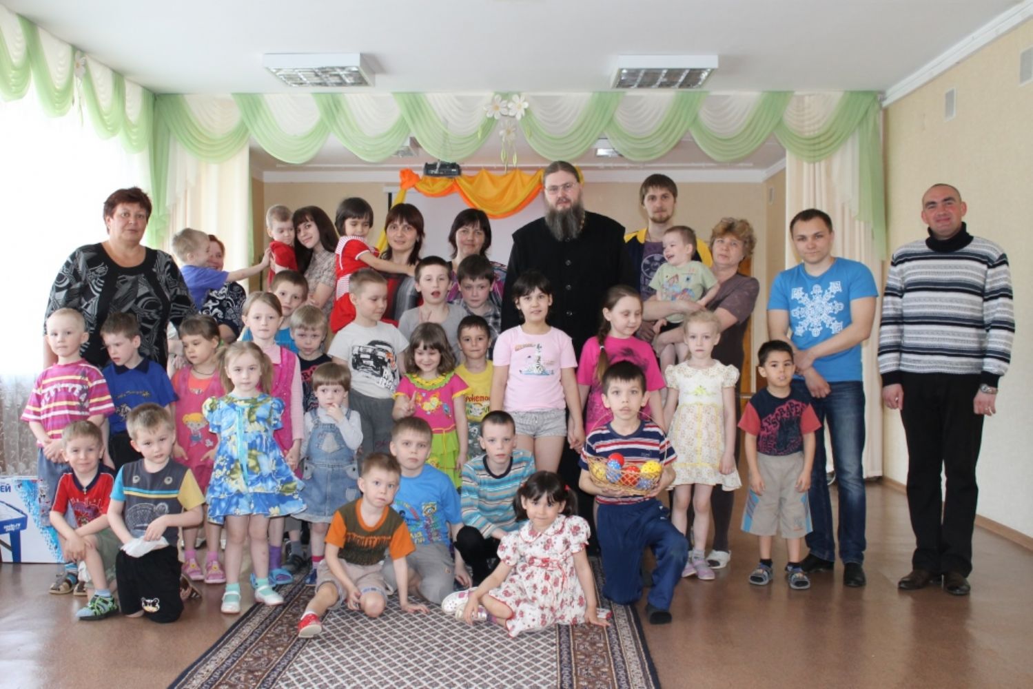 На Светлой седмице, 24 апреля, в детском доме «Детство» члены молодежного клуба при храме прп. Серафима Саровского поздравили с праздником Пасхи всех детей и взрослых.