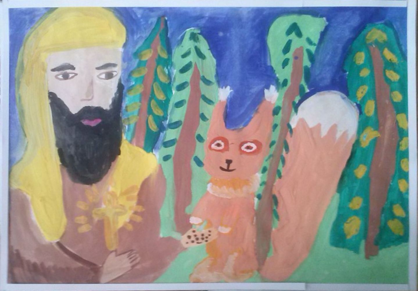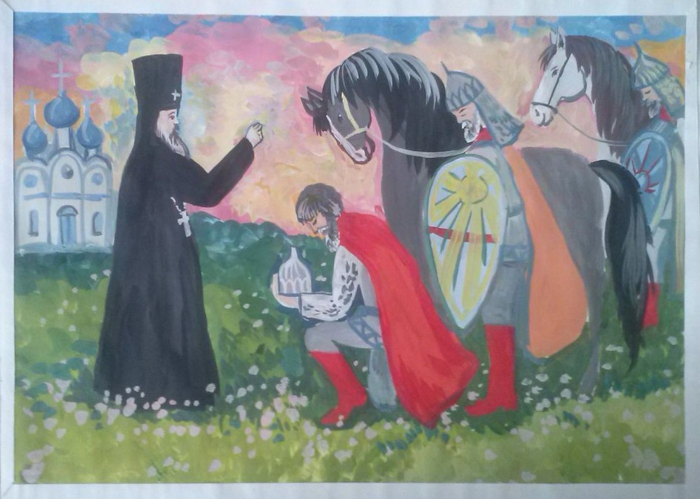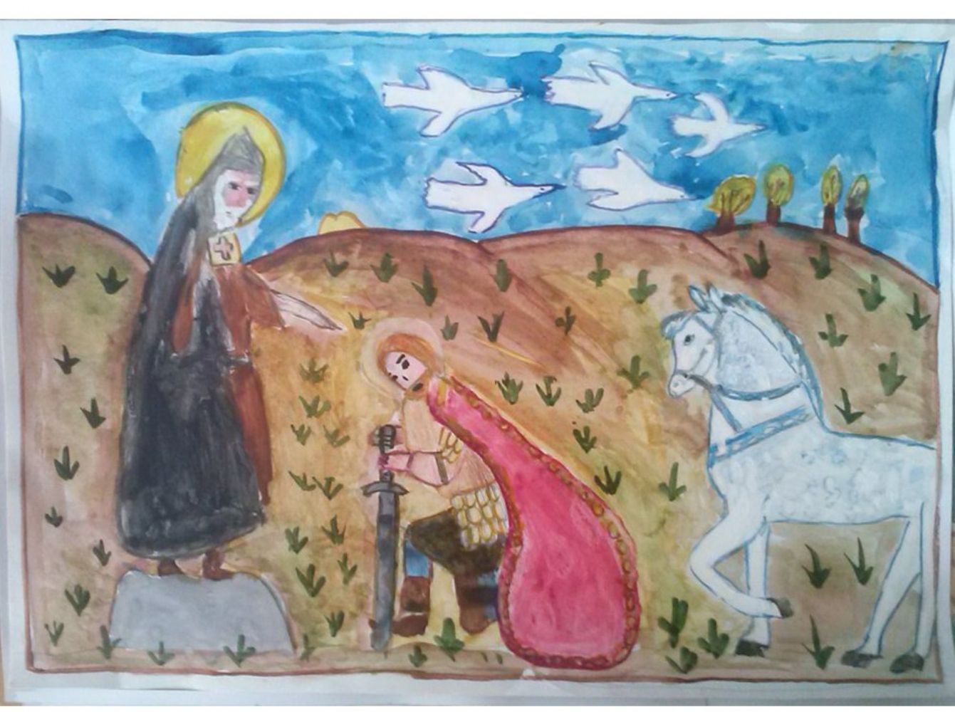 Первая возрастная категория до 8 лет: 1. Самойлова Ангелина «Дружба со зверями», 2. Романов Юрий «Сергий Радонежский и Дмитрий Донской», 3. Плотников Петр «В гостях у Преподобного».