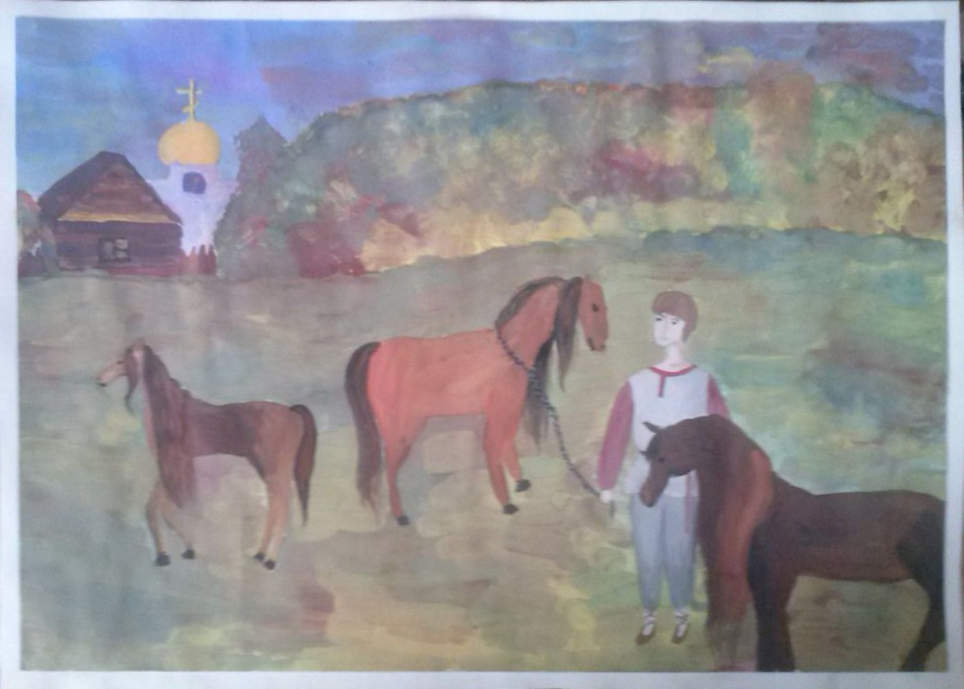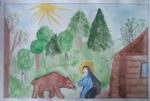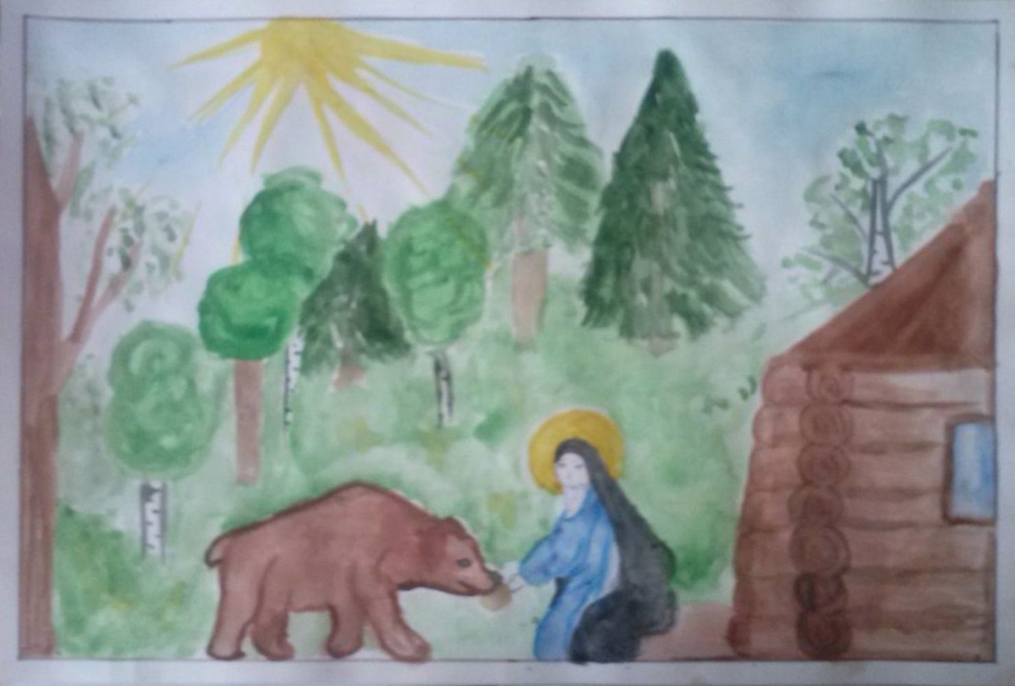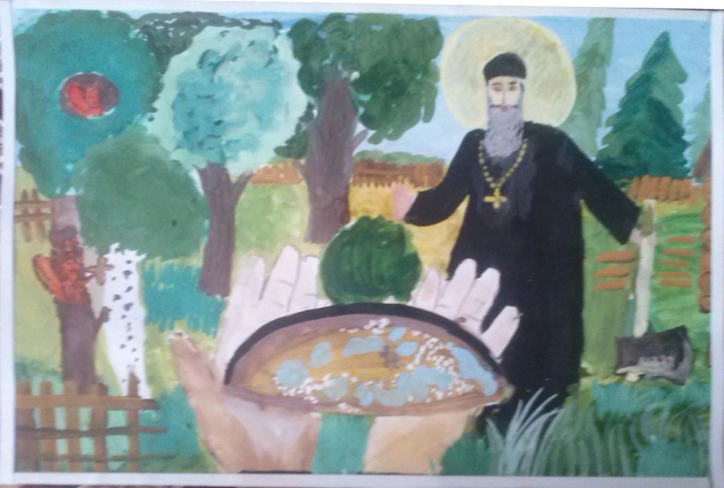 Первая возрастная категория до 8 лет: 1. Самойлова Ангелина «Дружба со зверями», 2. Романов Юрий «Сергий Радонежский и Дмитрий Донской», 3. Плотников Петр «В гостях у Преподобного».
