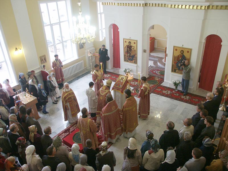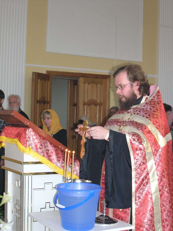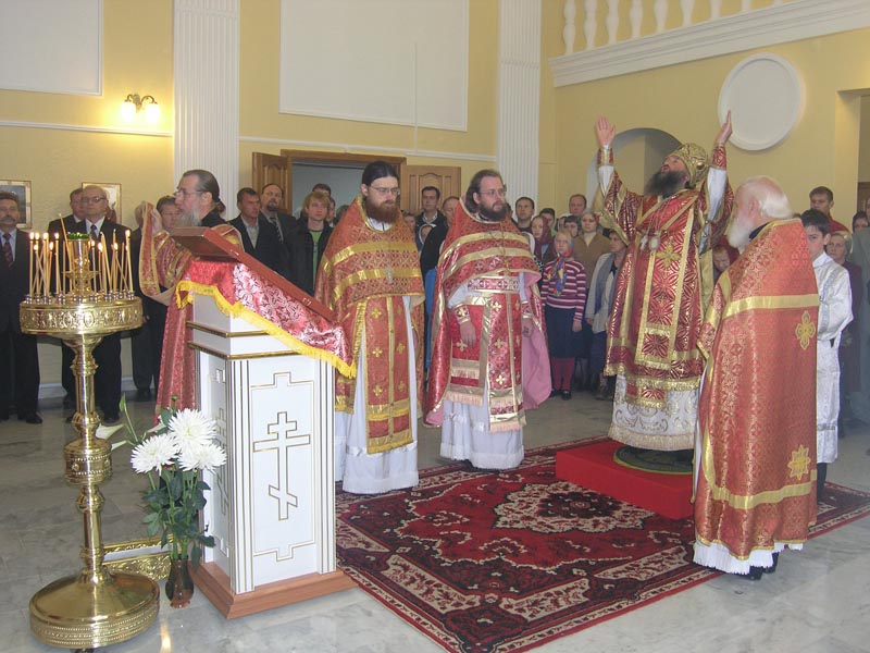 Накануне, 17 сентября был отслужен водосвятный молебен, во время которого было освящено помещение храма. Затем началось Всенощное Бдение.