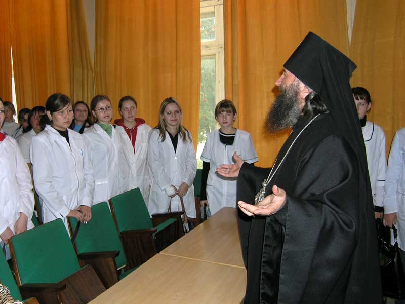 «Медицина — это не работа, а служение людям. Любое ваше дело должно начинаться с молитвы, потому что без благословения Господня все дела тщетны», — с таким напутствием обратился Владыка к слушателям.