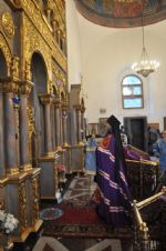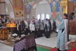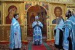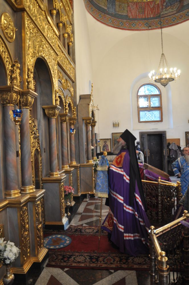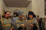 Его Высокопреосвященству сослужили: настоятель храма, секретарь епархиального управления митрофорный протоиерей Сергий Филонов, иеромонах Серафим (Пасанаев) и иерей Алексий Михеев.