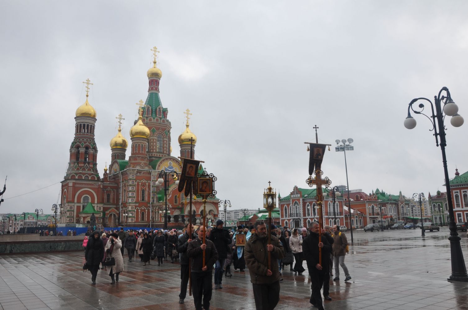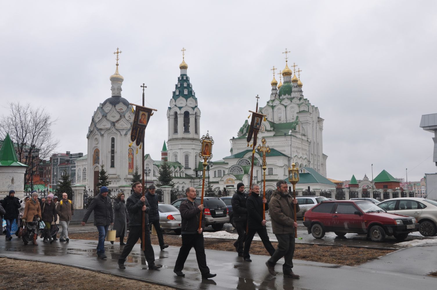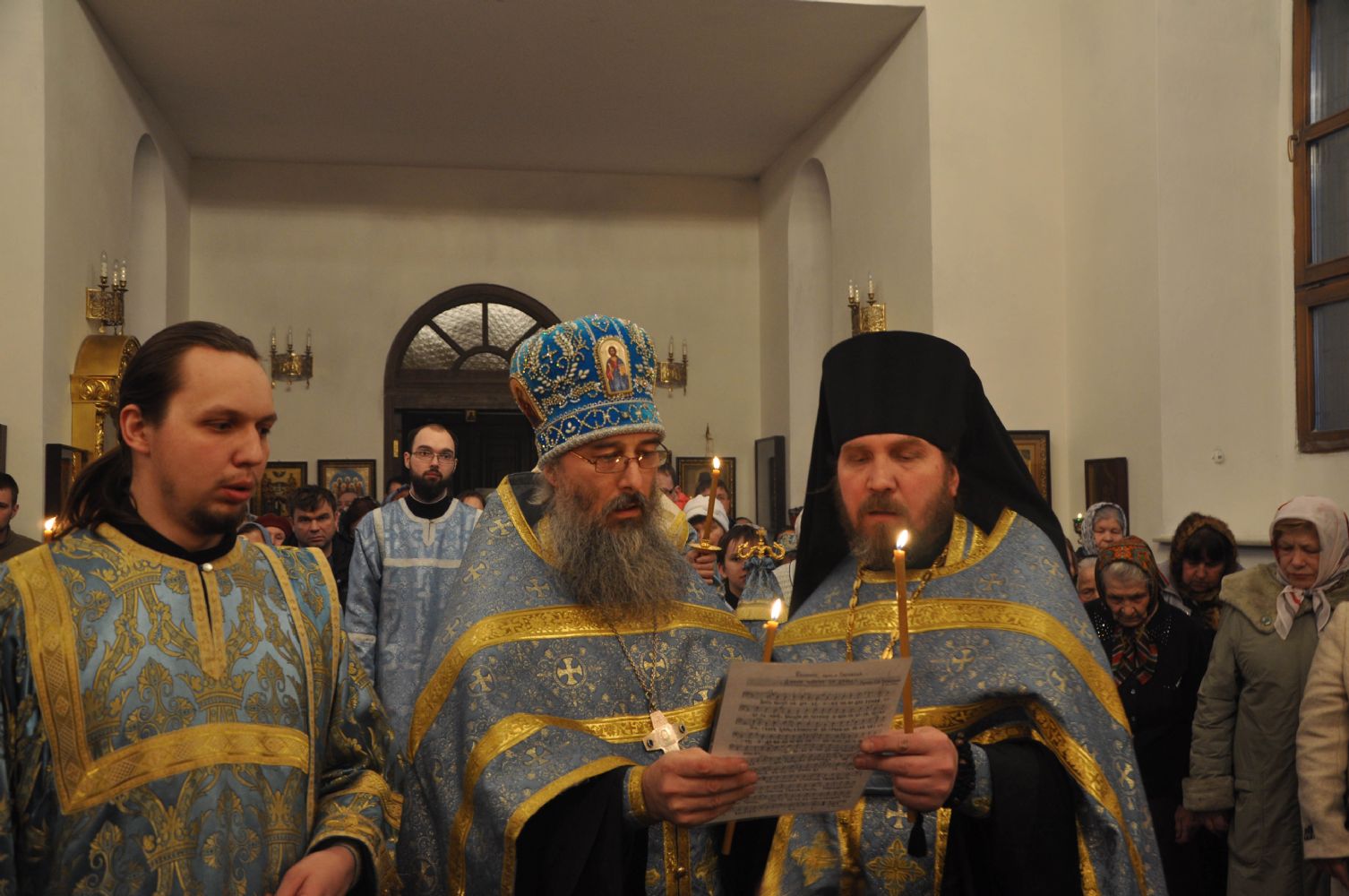 Вечером, 6 апреля, в канун вторника Страстной седмицы, праздника Благовещения Пресвятой Богородицы, Его Высокопреосвященство совершил всенощное бдение в храме в честь Успения Пресвятой Богородицы г. Йошкар-Олы.