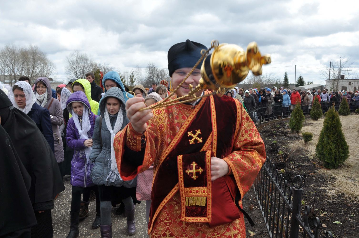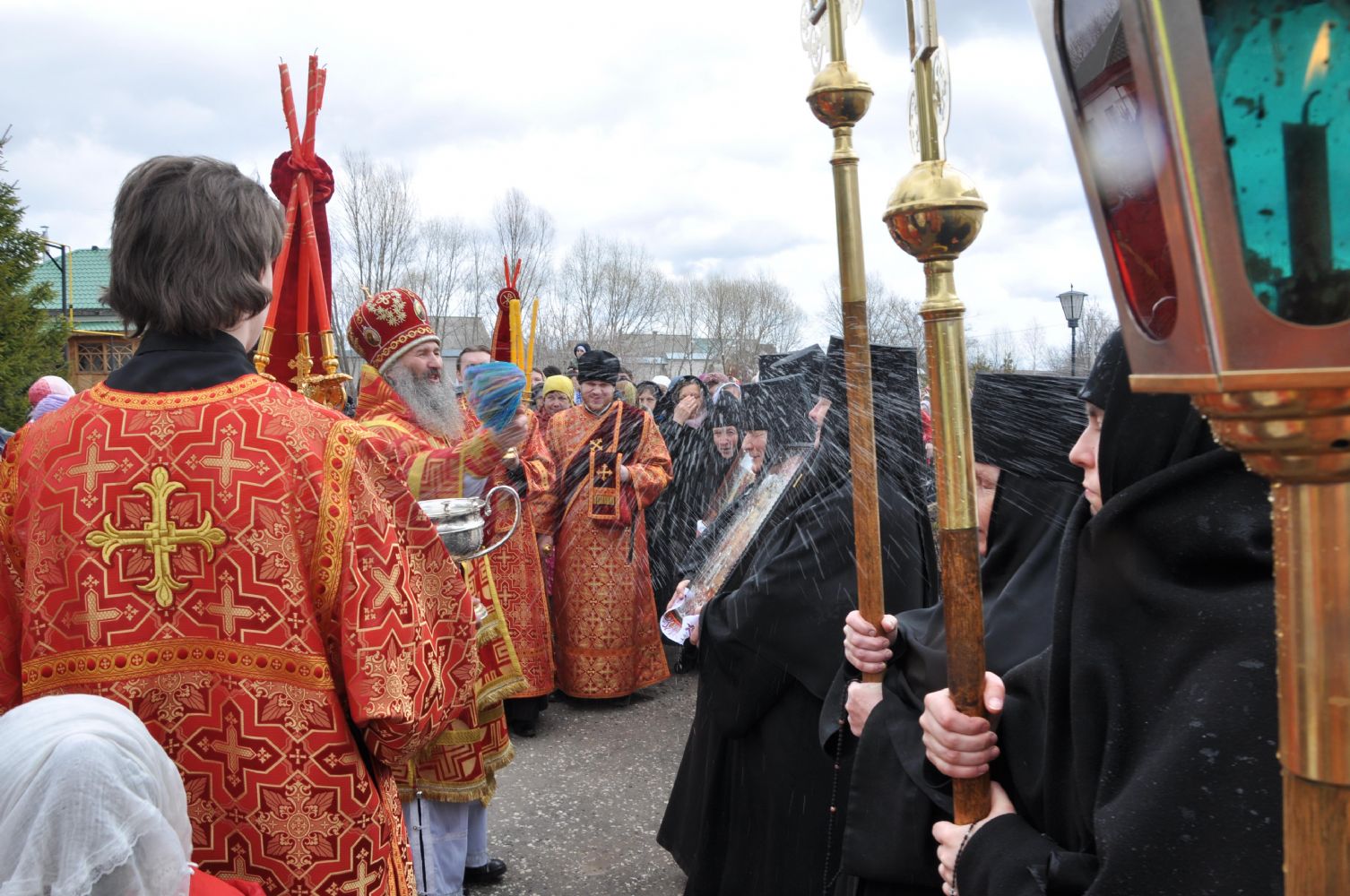 По окончании Литургии Владыка возглавил крестный ход вокруг храма. По завершении богослужения Архипастырь обратился к собравшимся с проповедью и поздравил женщин с праздником жен-мироносиц.