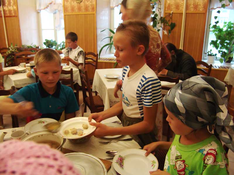 В первый же день двадцать приехавших ребятишек разделились на 4 команды и принялись за выполнение заданий кулинарного конкурса. Приготовить обед быстро и вкусно, правильно сервировать стол и представлять свои блюда должна уметь каждая будущая хозяйка. Да и мальчишкам эти умения в жизни пригодятся! Когда Владыка появился в трапезной, его ждали аппетитные кушанья. Представители всех команд снискали похвалу архипастыря, хоть и не обошлось без курьезов. Вечер закончился чаепитием, «сервированным» загадками и конкурсами, так что скучать не пришлось!