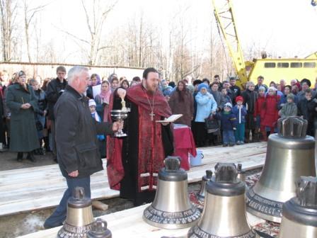На молебне с освящением колоколов, который провел здешний священник отец Димитрий Вылекжанин,
