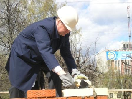 Возводится здание по инициативе Президента республики Марий Эл Леонида Игоревича Маркелова, который, осмотрев стройку, заложил в кладку будущего Православного центра несколько кирпичей.