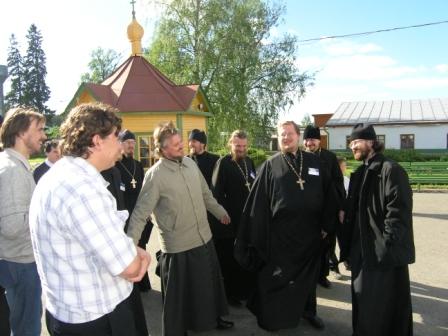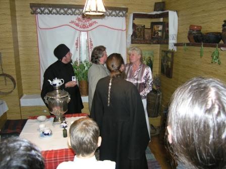 По прибытии гостям была предложена интересная автобусная экскурсия по храмам Вятки, которую провел секретарь епархии священник Александр Балыбердин, с посещением молодежного историко-краеведческого клуба «Мир».