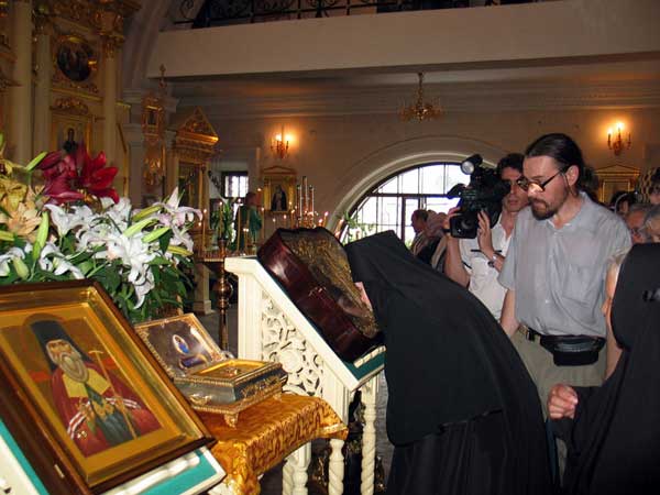 В 16.00 святыни были торжественно принесены в Крестовоздвиженский собор г. Казани, где были встречены собором городского духовенства, после чего перед ними был отслужен молебен.