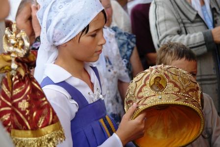 После богослужения прямо во дворе церкви были накрыты столы с праздничными угощениями, ребята из воскресной школы выступили с концертом.