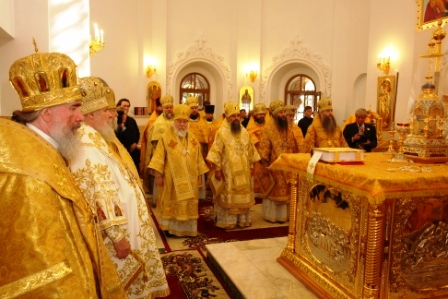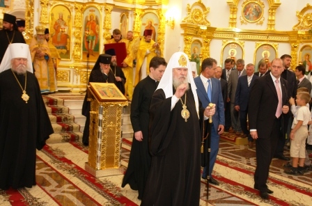 На следующий день участники форума присутствовали при важном историческом событии для Ижевской епархии – первом богослужении Патриарха Московского и Всея Руси на Удмуртской земле. Его Святейшество патриарх Алексий II освятил вновь воссозданный Собор во имя Святого Архистратига Михаила, в год 100-летия со дня первого его освящения, и совершил в нем первую Божественную литургию.