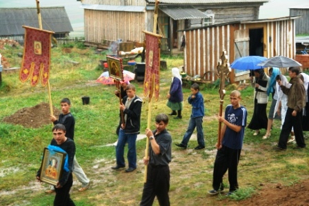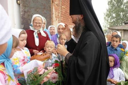Архипастыря здесь всегда ждут и встречают с большой радостью прихожане храма, воспитанники Воскресной школы, верующие из окрестных деревень. Так было и в этот раз. Несмотря на сильный дождь, после литургии, по - традиции, совершён крестный ход вокруг храма.