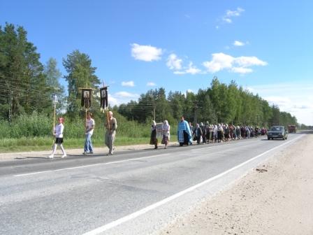 Начался крестный ход после праздничного богослужения от молитвенного дома поселка Силикатный и по казанскому тракту отправился в поселок Сурок. Это только первый пункт назначения хода, и его дневной отрезок. На следующий день предстоит шествие в поселок Пембу, а еще через день поселок Куяр.