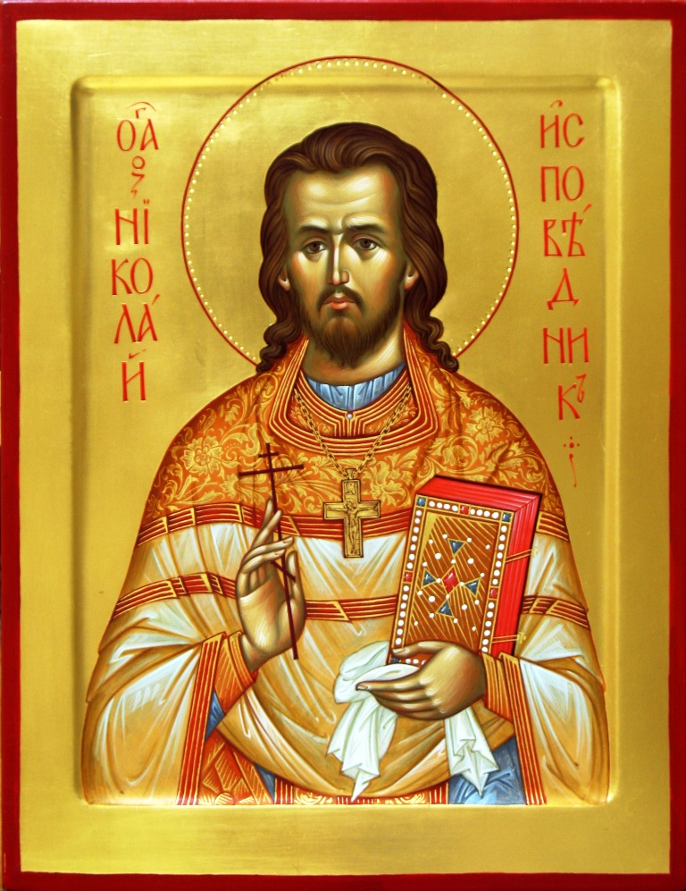 Рюриков Николай Владимирович родился 5.04.1884 г. в с. Оселки Макарьевского уезда Нижегородской губернии. После окончания в 1905 г. Нижегородской Духовной семинарии до 1910 г. нес послушание учителя и законоучителя в учебных заведениях Нижегородской губернии. 22.10.1910 г. рукоположен во священника с назначением в храм Макарьевского Желтоводского женского монастыря, 23.08.1911 г. переведен в Троицкий собор г. Горбатова Нижегородской губернии. В 1911-1917 г.г. — заведующий и законоучитель школ Нижегородской губернии. Награжден набедренником (9.05.1912 г.), скуфьей (5.04.1916 г.), медалями в память 25-летия церковно-приходских школ и к 300-летию дома Романовых. В советское время показал себя исповедником Православной веры, боролся с обновленчеством. 29.07.1927 г. арестован по обвинению в «контрреволюционной агитации». 4.11.1927 г. приговорен к 3 годам ссылки, которую отбывал в Восточной Сибири. В 1930-1934 г.г. находился на положении административного ссыльного, проживал в г. Козьмодемьянске. 7.04.1934 г назначен священником в церковь с. Владимирское Горномарийского района МАССР. Арестован 29.09.1937 г. 8.10.1937 г. приговорен к 10 годам заключения. Скончался 18.06.1943 г. в Локчимлаге Коми АССР и погребен на местном кладбище. Причислен к лику новомучеников и исповедников Российских указом священного Синода от 6.10.2006 г. Чин прославления святого прошел 19.10.2007 г. в Мироносицком монастыре с. Ежово. Память святого празднуется 18 (5) июня.