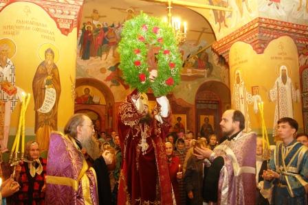 Накануне вечером архиепископ Иоанн отслужил всенощное бдение с чином выноса Креста в Вознесенском кафедральном соборе города Йошкар-Олы.