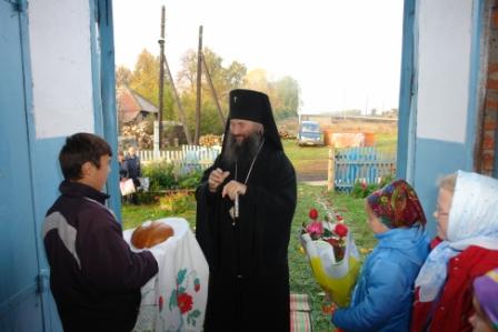 В самый день праздника Владыка совершил Божественную литургию в Крестовоздвиженском храме села Кукнур. Сослужили Владыке настоятель храма иерей Николай Суринов, священник Сергий Сильдушкин и отец Владимир Власов. В Богослужении также приняли участие воспитанники общеобразовательной школы-интерната села Казанское. Ребята, встречая архипастыря, пропели духовные песнопения, рассказали стихи на тему Воздвижения креста и подарили Архипастырю подарок, сделанный собственными руками.