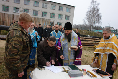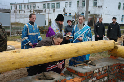 С того времени в колонии проведена немалая работа. Из находящихся в заключении сформирована бригада. Их силами заготовлены строительные материалы, залит фундамент, положены первые бревна стен будущего храма.