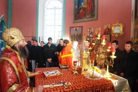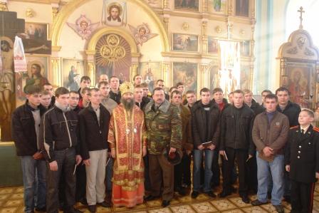 Как уже замечалось, память святого Димитрия Солунского издревле связывалась на Руси с воинским подвигом, патриотизмом и защитой Отечества. Именно поэтому в этот день в храме было много призывников. В этом году из села уходят служить свыше 20 человек. По сложившейся традиции владыка Иоанн благословил молодых ребят на исполнение их воинского долга, преподал наставление, помазав елеем и окропив святой водой. Ведь по слову святого праведного Феодора Ушакова, воин непобедим только тогда, когда имеет в себе твердую вру и упование на Бога.