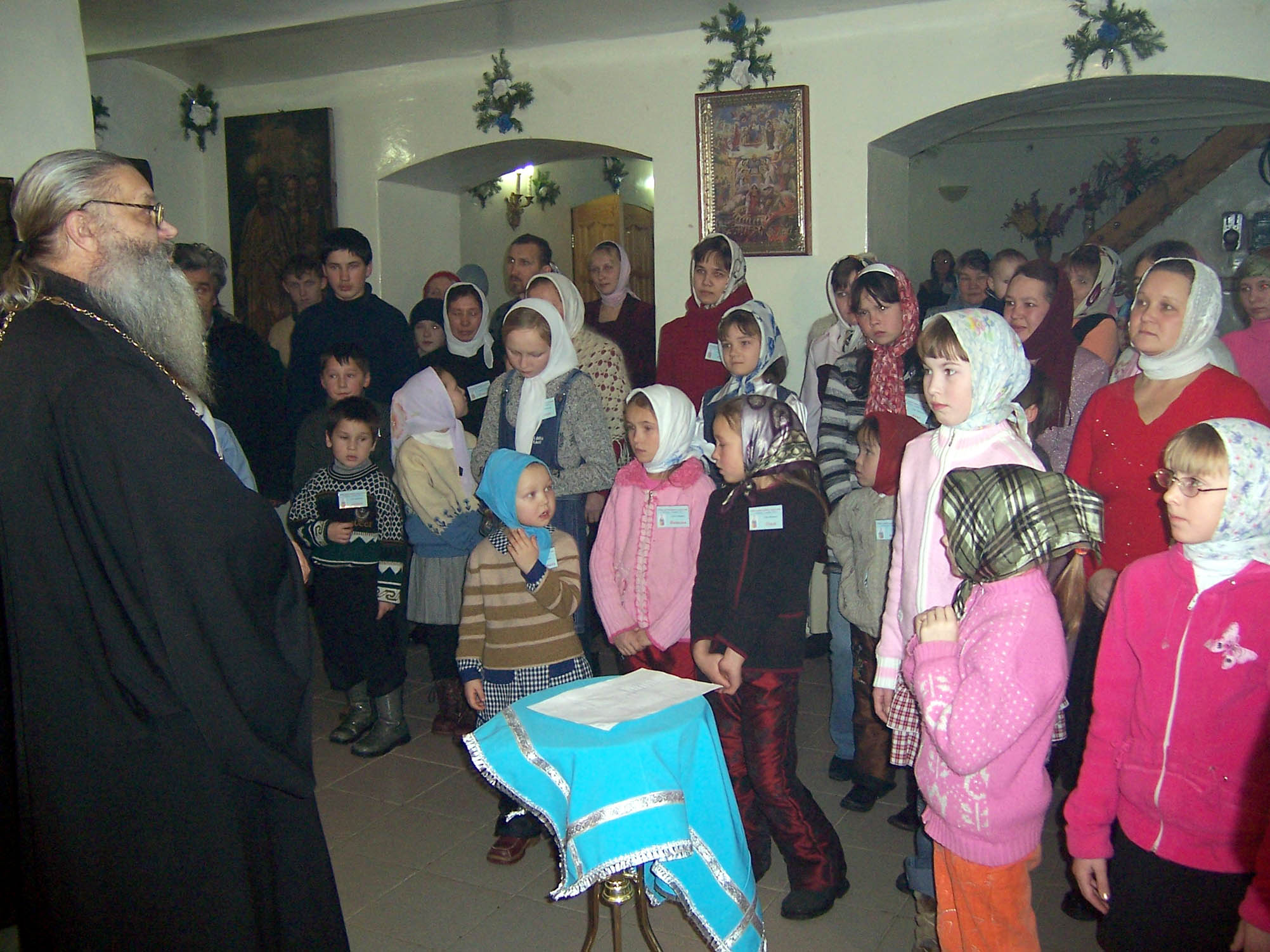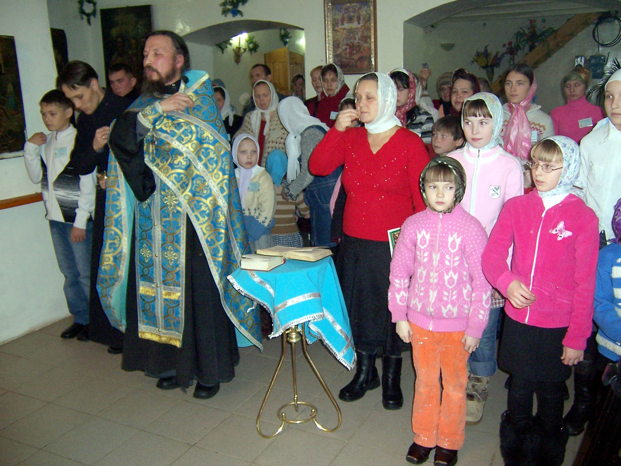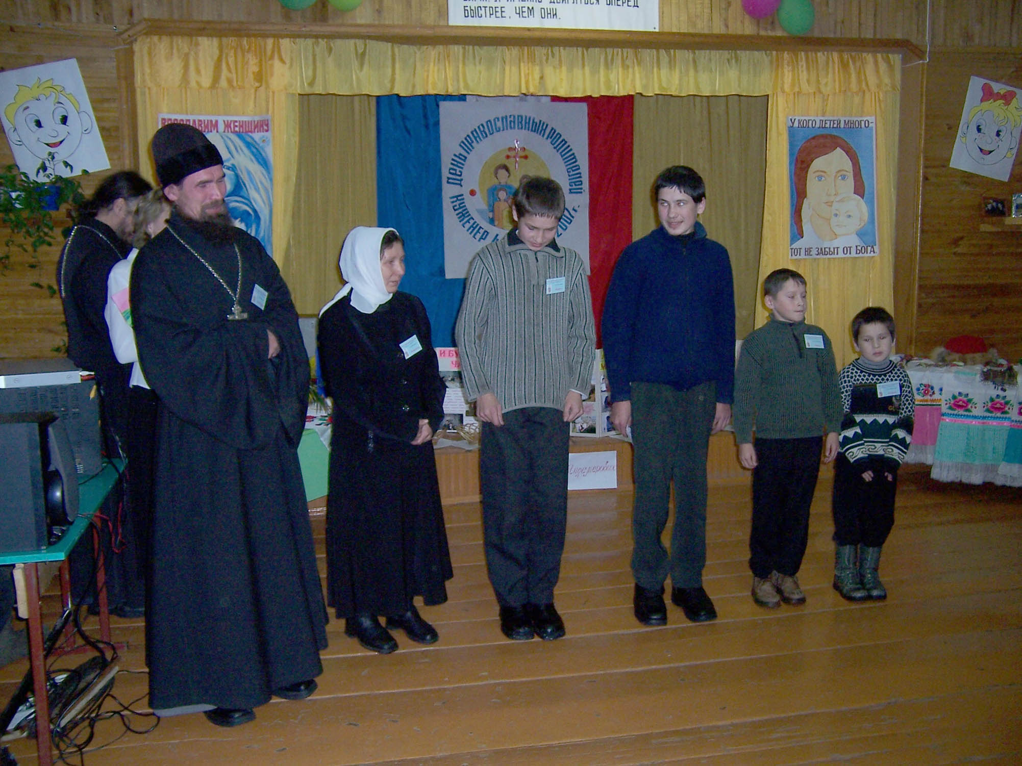 Начался праздник с общего молебна. Затем - знакомство. Семья рассказывает о себе, своих радостях, заботах. Показывают поделки, поют, читают стихи. Каждой маме – букет цветов, а ребятишкам – подарки. После знакомства концерт собственными силами и совместная трапеза.