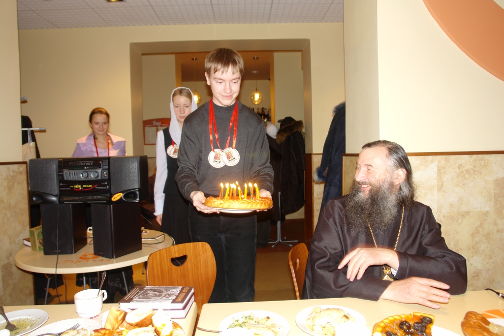 Завершением вечера стала праздничная трапеза, собравшая всех ребят и гостей за одним столом. Это особое мероприятие со своими традициями и обычаями. Здесь происходит посвящение в певчие новеньких и проводы выпускников. Особо отличившимся Владыка вручает призы. Звучат выступления именинника – детско-юношеского хора «Благовест» и поздравления хоров городских храмов.