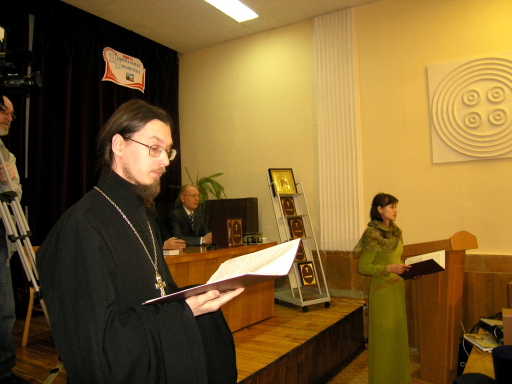 Небольшой зал с трудом вмещал собравшихся на этот, несомненно, значимый праздник в жизни нашей Республики. С приветственным словом к присутствующим обратились Архиепископ Йошкар-Олинский и Марийский Иоанн, министр культуры, печати и по делам национальностей Михаил Васютин, а также профессор, доктор исторических наук Ксенофонт Сануков, проректор МарГУ, доктор исторических наук, профессор Сергей Стариков.