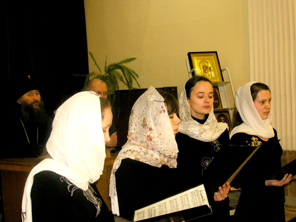 В презентации принял участие квартет хора храма мученицы Татьяны при МарГТУ, который исполнил песнопения на русском, греческом и марийском языках.