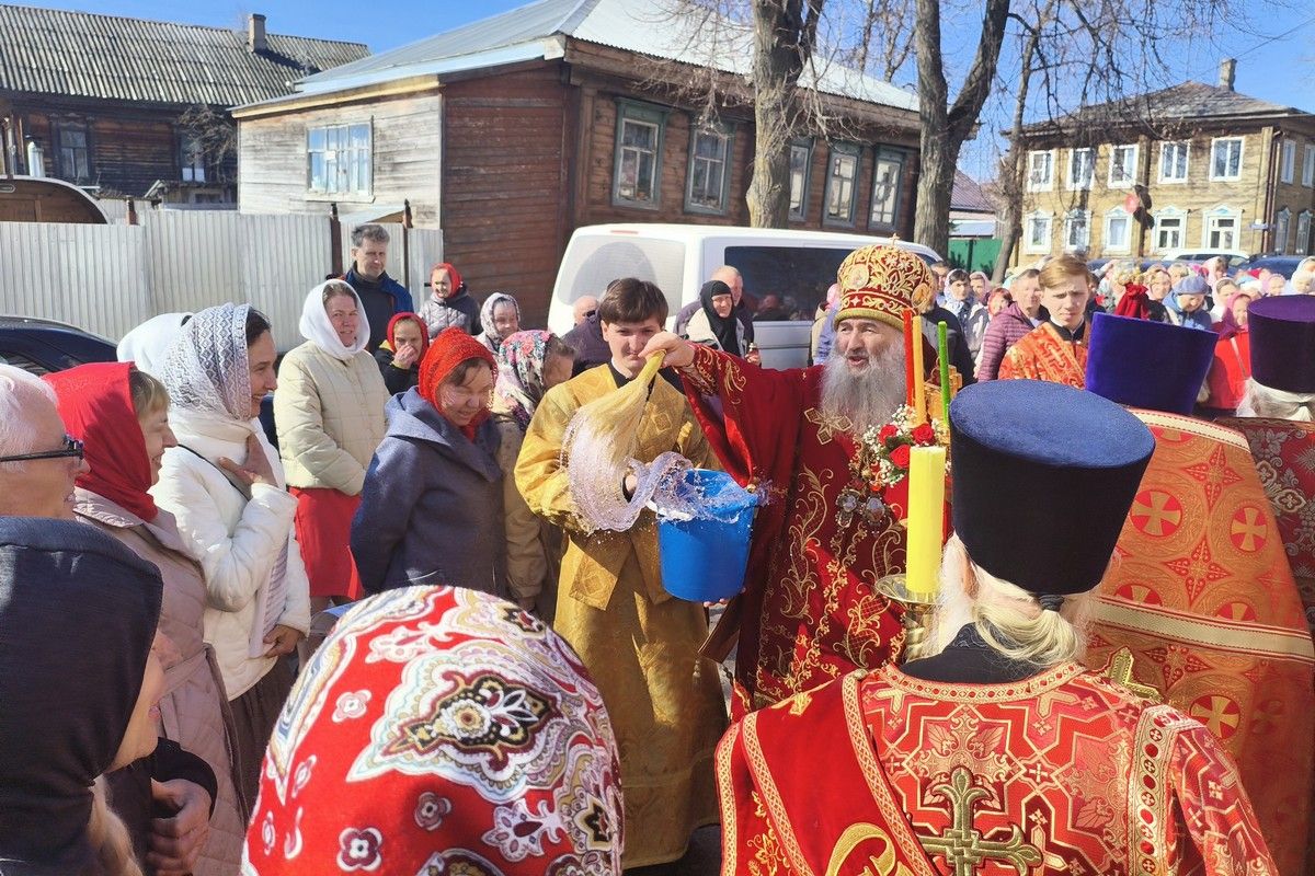 После Литургии был отслужен молебен с крестным ходом вокруг церкви с храмовой иконой святого.