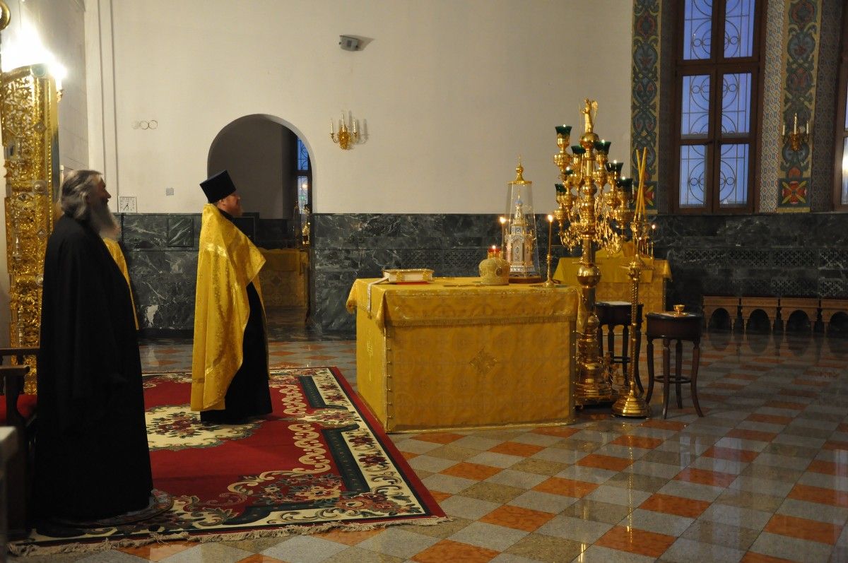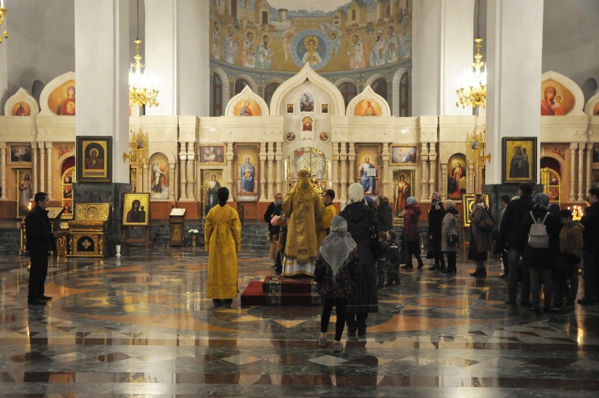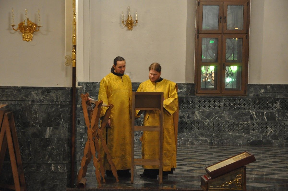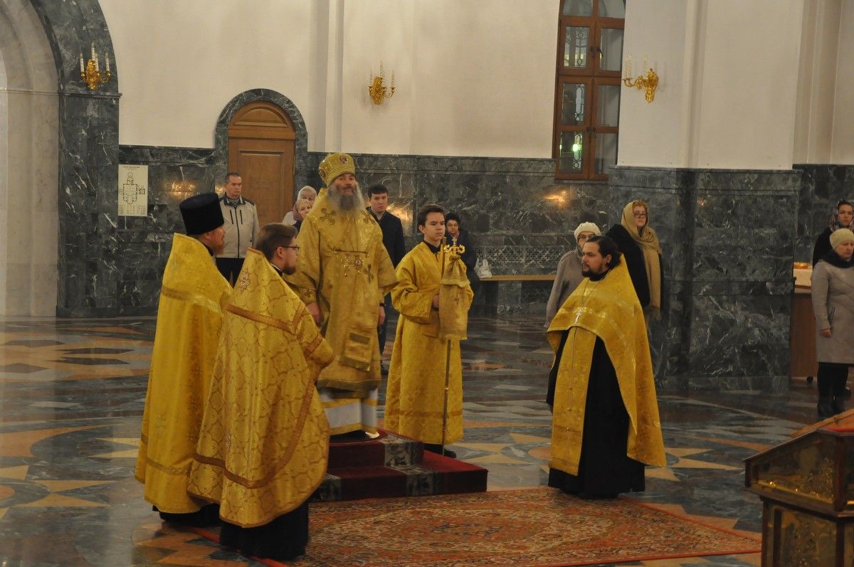 За богослужениями Владыке сослужили: ключарь собора протоиерей Сергий Поглазов, клирики собора иерей Никифор Захаров и Артемий Промович, диаконы Андрей Дружинин и Игорь Коваль, клирик храма Рождества Пресвятой Богородицы протодиакон Михаил Козловский.