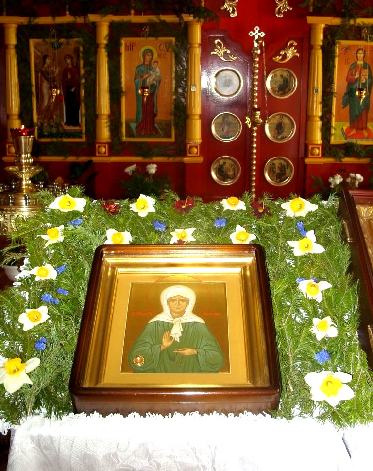 1 мая, в четверг Светлой седмицы - в канун дня, когда Русская Православная Церковь чтит память блаженной Матроны Московской, священник Оршанского храма Рождества Иоанна Предтечи о. Димитрий Вылекжанин доставил сюда икону святой с частицей ее мощей. В 16 часов прихожане собрались на праздничную Пасхальную службу блаженной Матроне.
