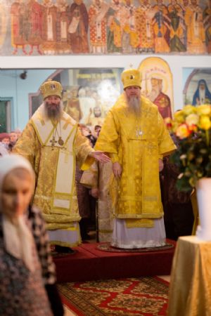 19 декабря, в день памяти святителя Николая, архиепископа Мирликийского, чудотворца, митрополит Йошкар-Олинский и Марийский Иоанн и епископ Волжскиий и Сернурский Феофан совершили Божественную литургию в Свято-Никольском кафедральном соборе города Волжска, который отмечал свой престольный праздник.
