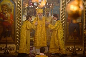 18 декабря, накануне дня памяти святителя Николая, Владыка Иоанн совершил Всенощное бдение в нижнем приделе Троицкого храма Йошкар-Олы, освященном в честь святителя Николая. За всенощным бдением Владыке сослужили секретарь Епархиального управления иеромонах Серафим (Пасанаев), настоятель храма митрофорный протоиерей Евгений Кутырев, благочинный Йошкар-Олинского церковного округа протоиерей Андрей Норкин, клирик собора Вознесения Господня города Йошкар-Олы иерей Владимир Глебов и клирик храма Рождества Пресвятой Богородицы села Семеновка протодиакон Михаил Козловский.
