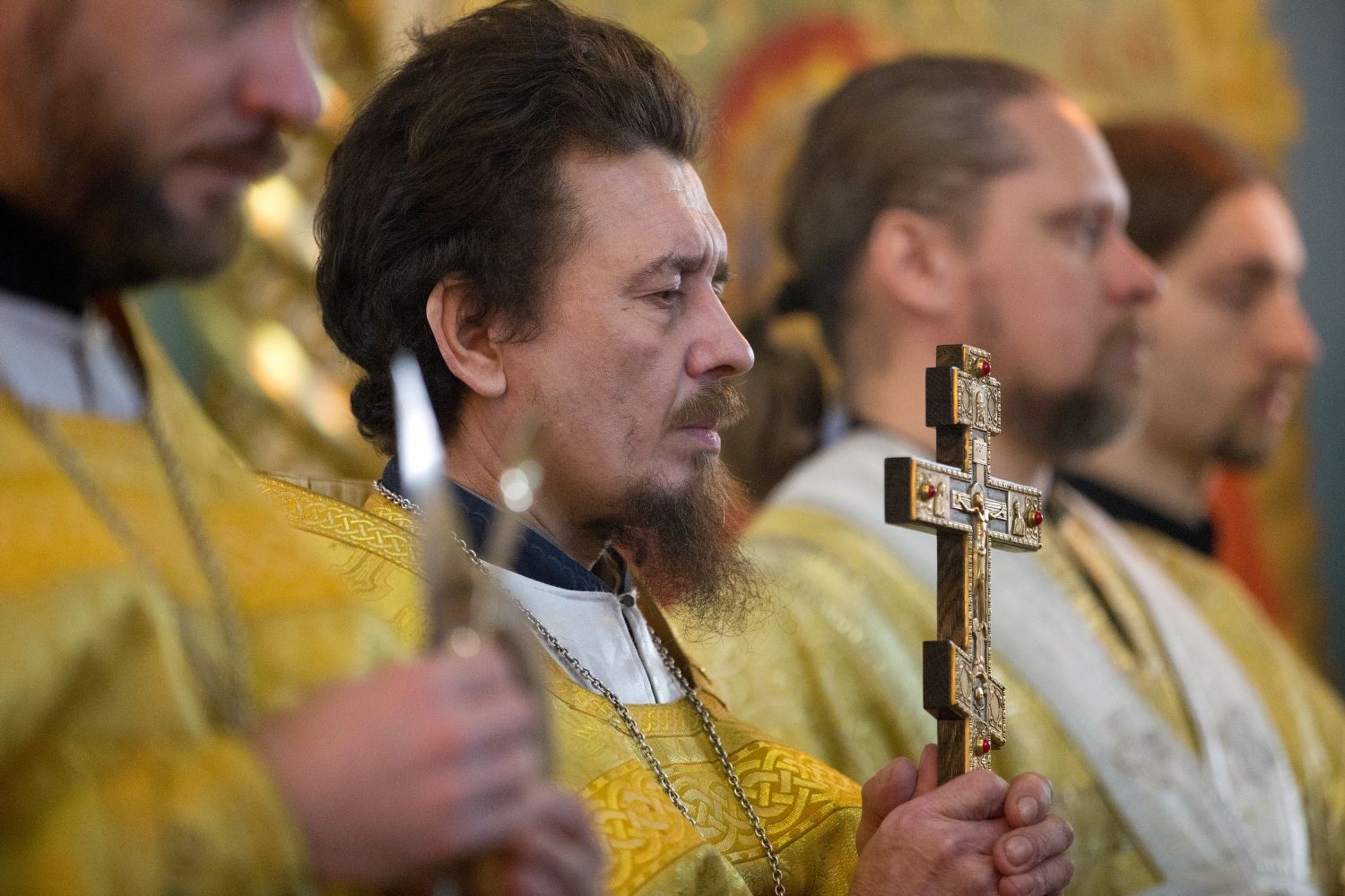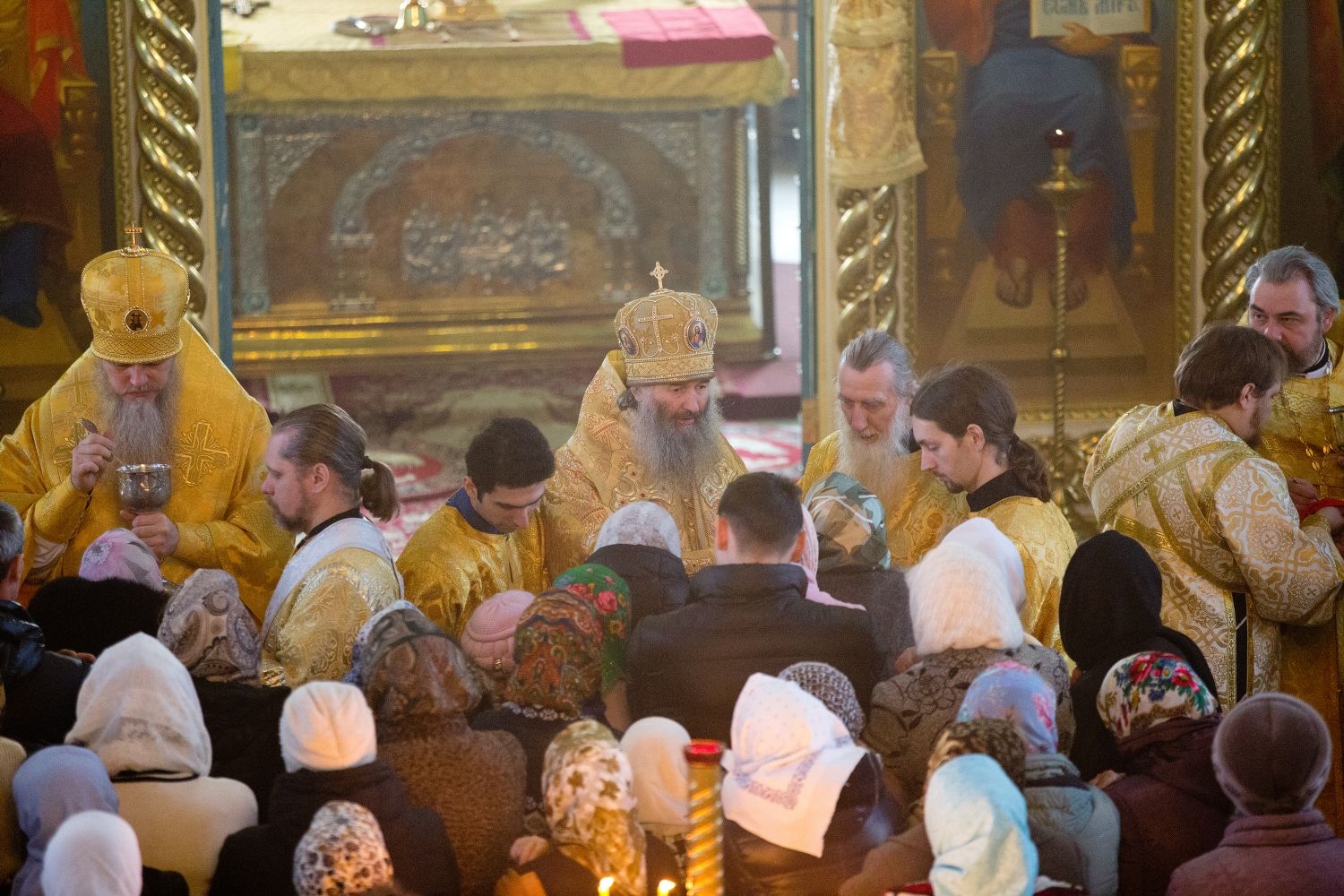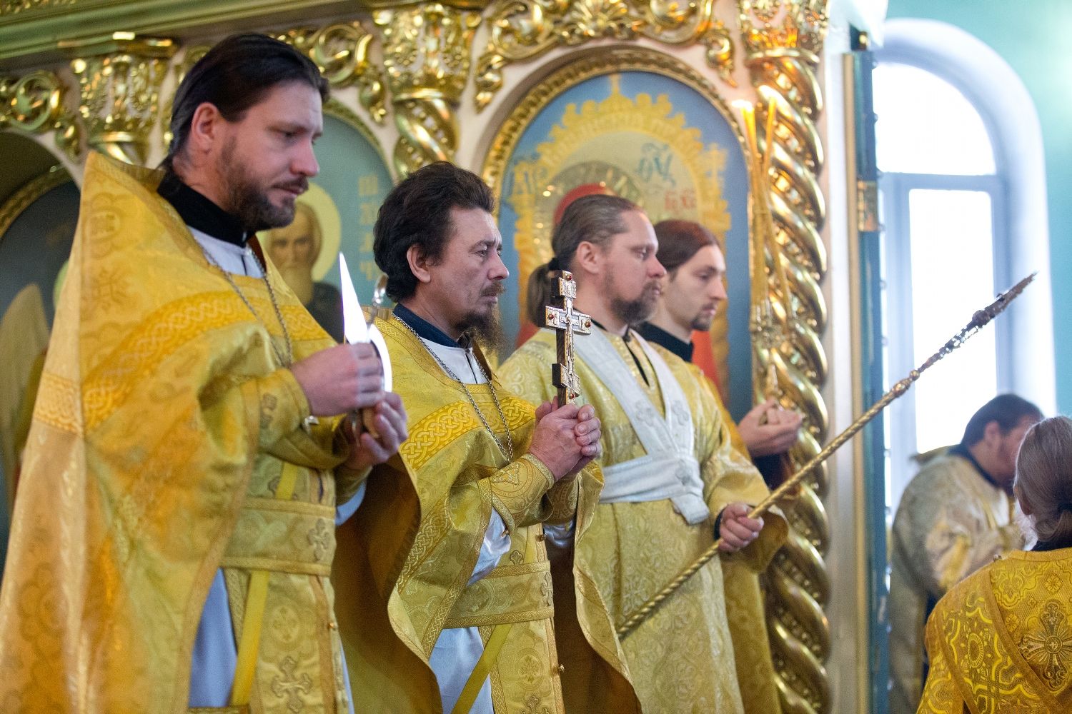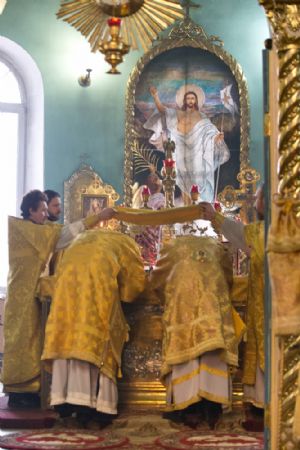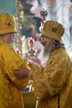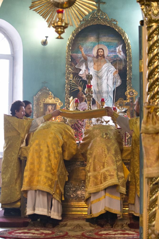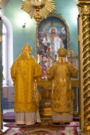 За Божественной литургией митрополиту Иоанну и епископу Феофану сослужили: настоятель собора святителя Николая Мирликийского города Волжска протоиерей Виталий Михеев, клирики собора иерей Александр Усков, иерей Алексий Скрябин, клирик храма Рождества Пресвятой Богородицы села Семеновка протодиакон Михаил Козловский и диакон Иоанн Захаров.
