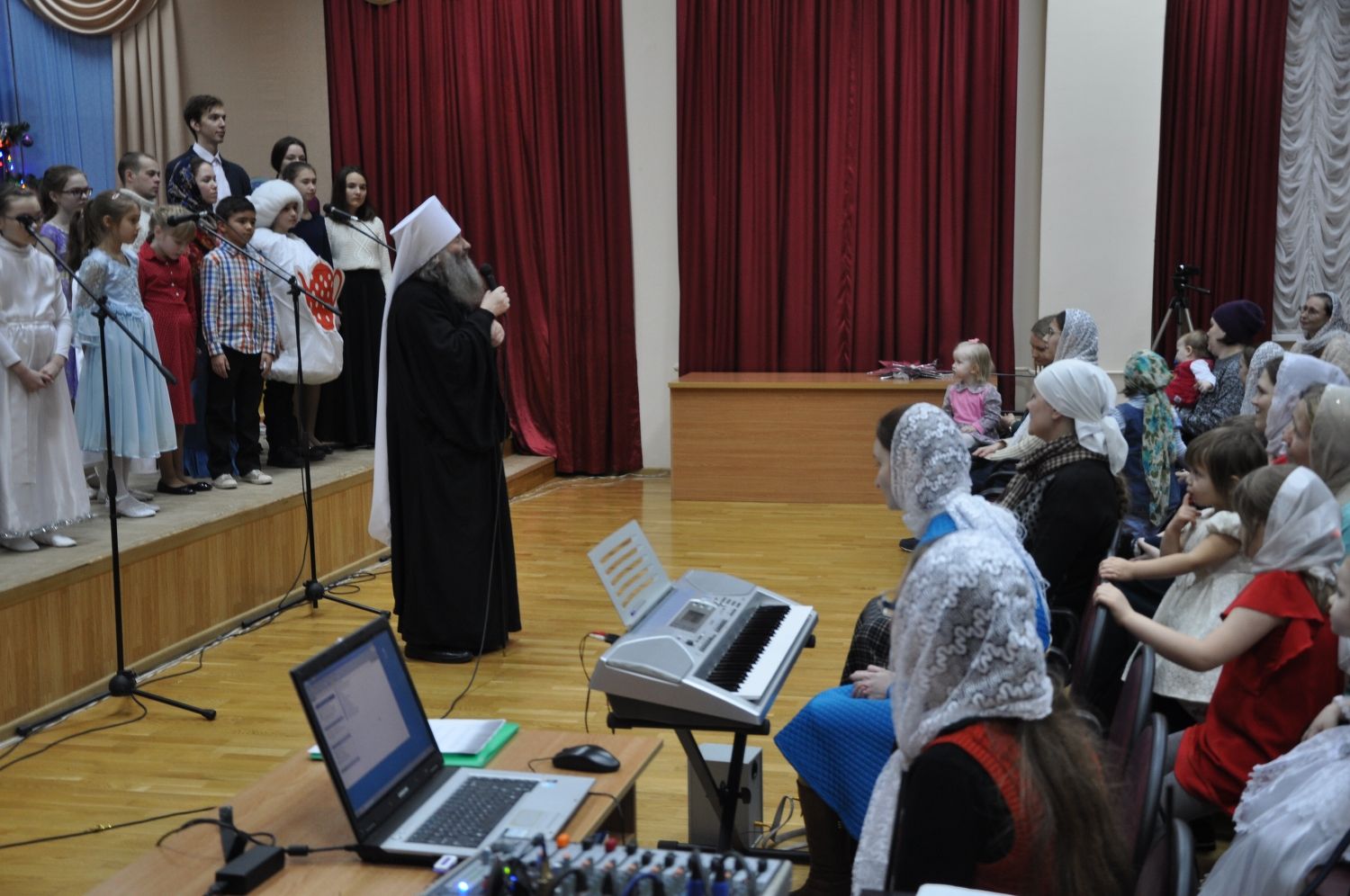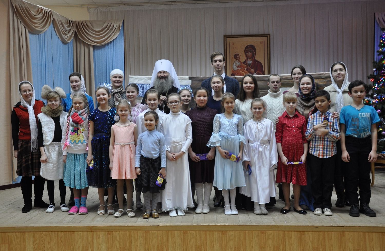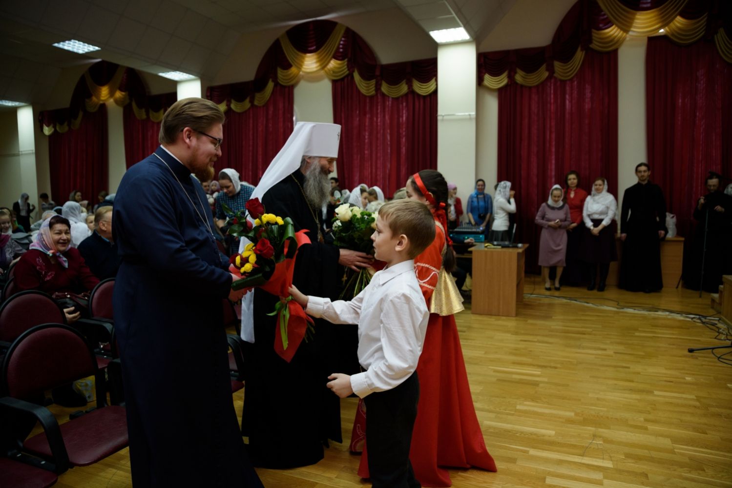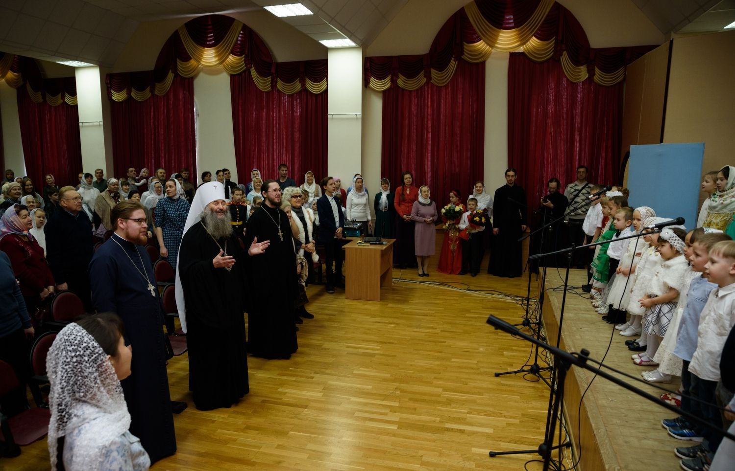 Посмотреть Рождественское представление пришли многочисленные зрители. Наряду с родителями в зрительном зале присутствуют и преподаватели воскресных школ, и духовники. Главный же гость — митрополит Йошкар-Олинский и Марийский Иоанн.