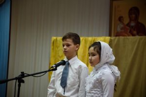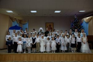 Вечером того же дня здесь состоялся еще один концерт. Выступали воспитанники воскресной школы при детско-юношеском хоре «Благовест». Разделить радость праздника с учащимися школы так же пришли родители, преподавали и владыка Иоанн.