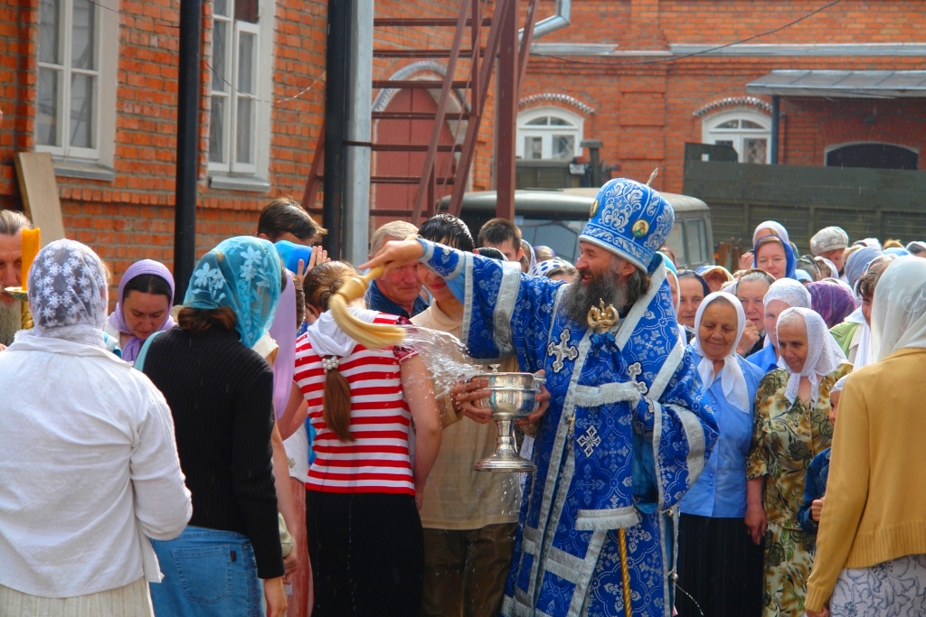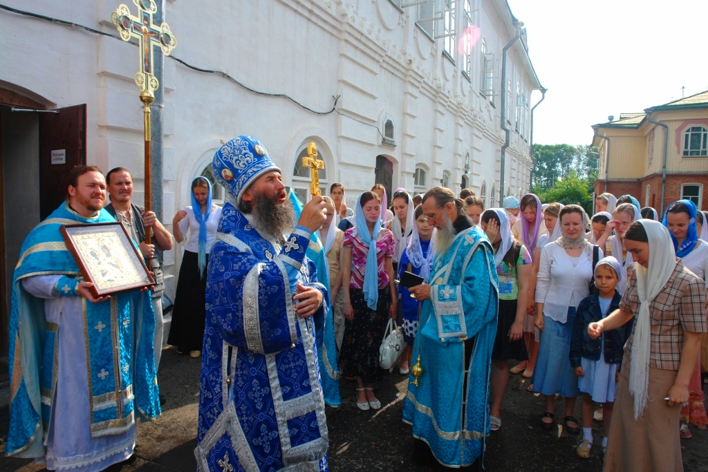 Почтить Матерь Божию в храм, утопающий в цветах, собралось в этот день много верующих, а торжественное богослужение возглавил архиепископ Йошкар-Олинский и Марийский Иоанн. Затем все вместе совершили со святым образом Царицы Небесной крестный ход вокруг епархиального управления.