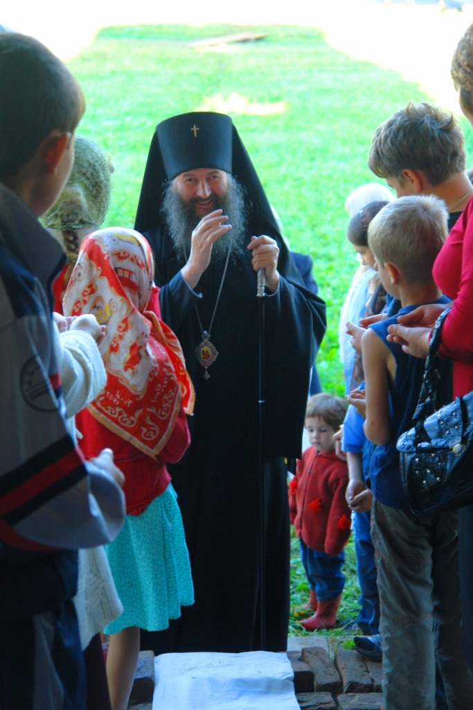 После богослужения Владыка побывал на спортивном мероприятии у детей, которые отдыхают здесь в православном детском поселении.
