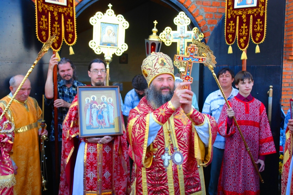 В нынешнем году исполняется 90 лет со дня расстрела в Ипатьевском доме Екатеринбурга семьи последнего Российского Императора Николая II. Это событие широко отмечается православными по всей России. Владыка Иоанн традиционно совершил Божественную литургию и крестный ход в Медведевском храме Державной иконы Божией Матери в приделе в честь Собора новомучеников и исповедников Российских.