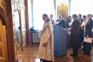 За богослужением песнопения исполнял детско-юношеский хор «Благовест» под руководством регента Татьяны Черновой.