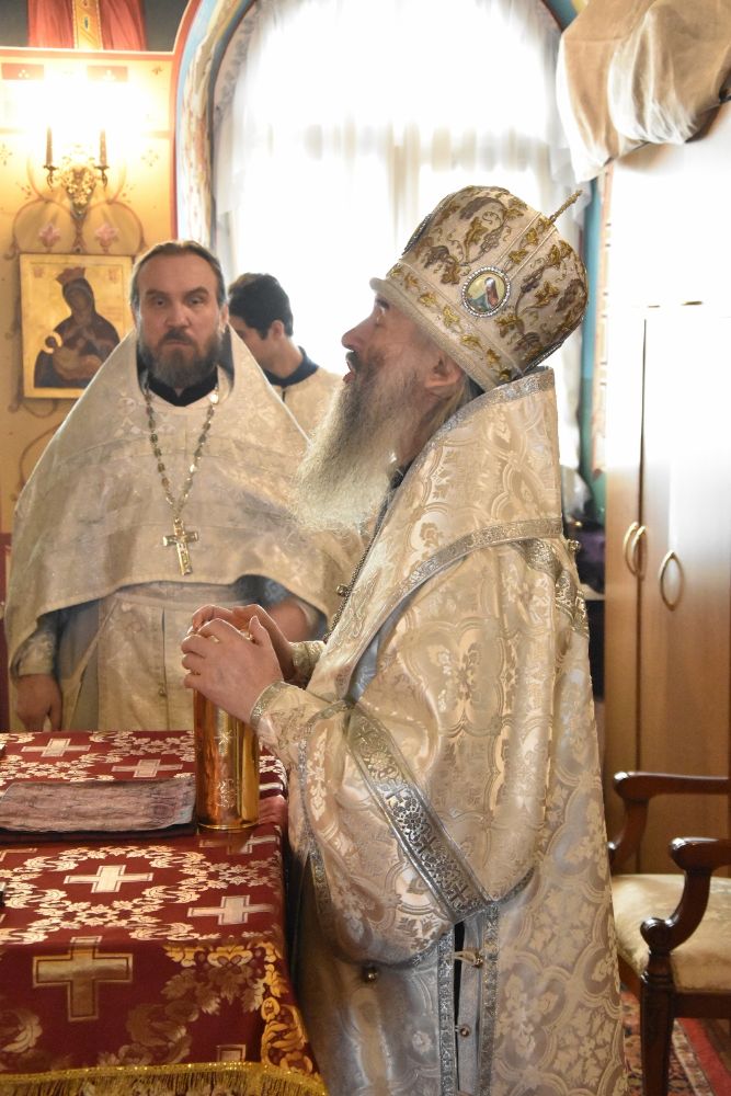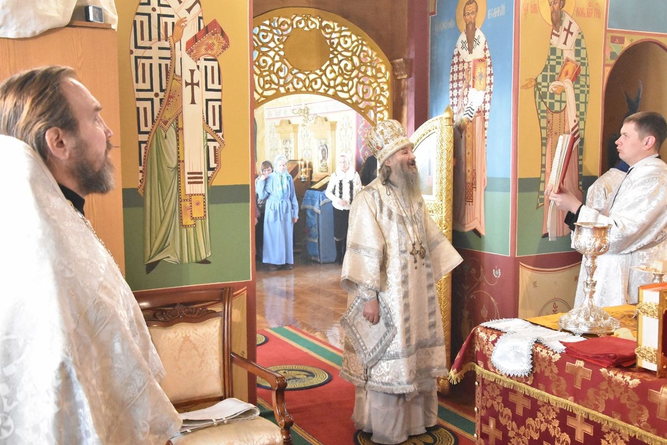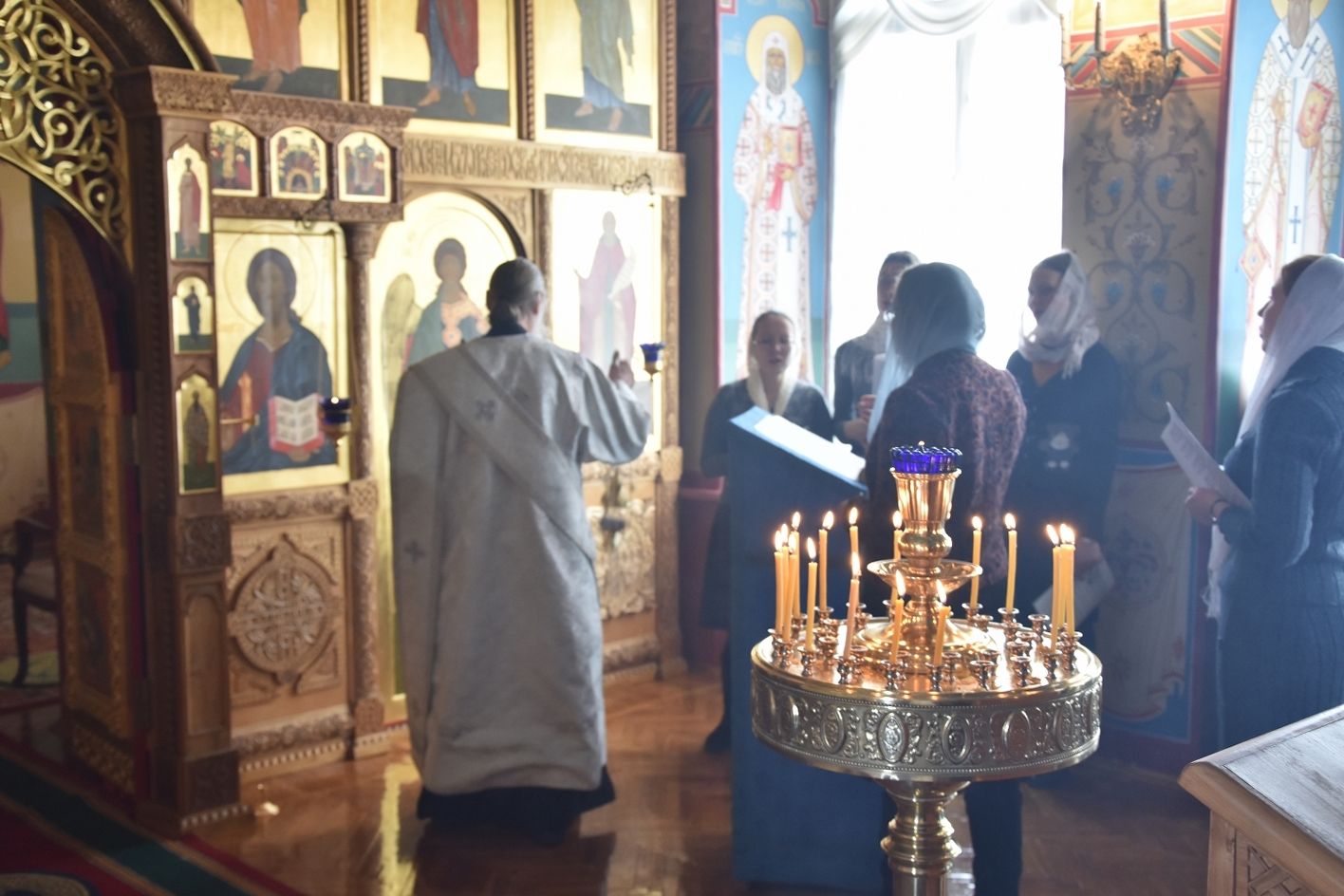 10 марта митрополит Иоанн возглавил Божественную литургию в домовом храме Епархиального управления иконы Божией Матери «Троеручица». Владыке сослужили секретарь епархиального управления иеромонах Серафим (Пасанаев) и клирик храма Рождества Пресвятой Богородицы села Семеновка протодиакон Михаил Козловский.