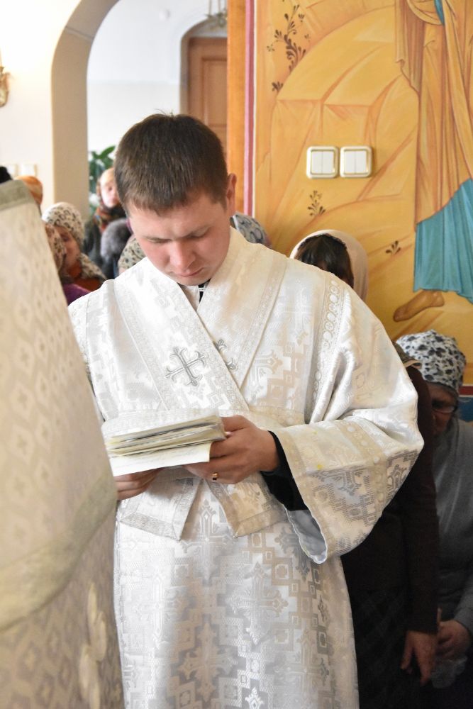 За Божественной литургией читались отрывки из посланий апостола Павла о терпении (послание к евреям 10 глава) и о будущем воскресении (первое послание к солунянам 4 глава), из Евангелия от Марка о призвании апостола Левия-Матфея (глава 2) и из Евангелия от Иоанна о будущем воскресении праведников и грешников (глава 5).