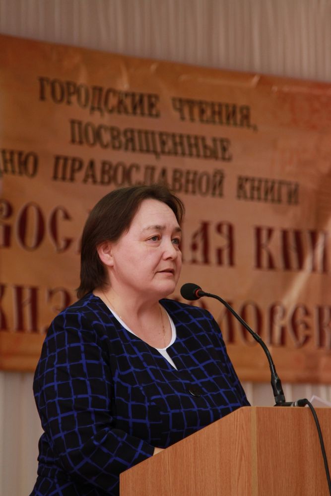 Заместитель директора Централизованной библиотечной системы г. Йошкар-Олы по библиотечным вопросам Н.А. Вилюкова раскрыла тему «Место православной литературы в фондах муниципальных библиотек г. Йошкар-Олы».